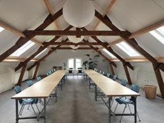 Op de zolder van onze wolschuur hebben wij een fijne ruimte ingericht voor vergaderingen en bijeenkomsten. Hier kunnen maximaal 20 mensen bij elkaar komen om in alle rust te overleggen, presenteren, samenwerken… Alles wat je hierbij nodig hebt is aanwezig: Koffie, thee, beamer, wifi… Je kunt op ons erf gratis parkeren, de uiterwaarden en de waal zijn op loopafstand. Onze schapen zijn vlakbij om even te knuffelen, in het voorjaar kan je zo de stal inlopen om even bij de lammetjes te kijken. De A15 is niet ver, wij zijn zeer goed en snel te bereiken!